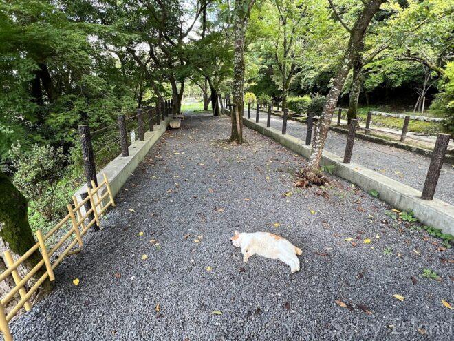 道のど真ん中で日向ぼっこをしている猫と遭遇しました。