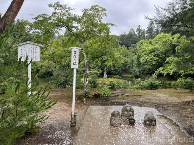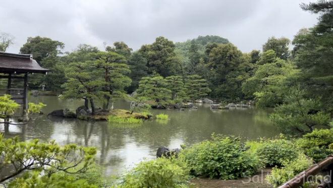 鹿苑寺庭園の中心的存在である鏡湖池(きょうこち)