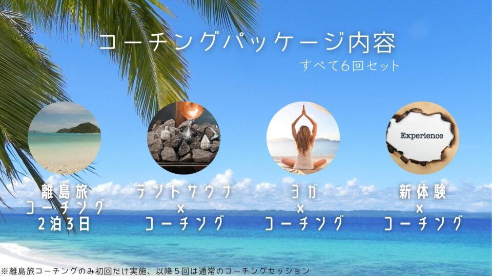 旅とコーチングの相性は抜群で、コーチとともに離島旅をしながらのコーチングセッションをサービスとして提供させていただいております。